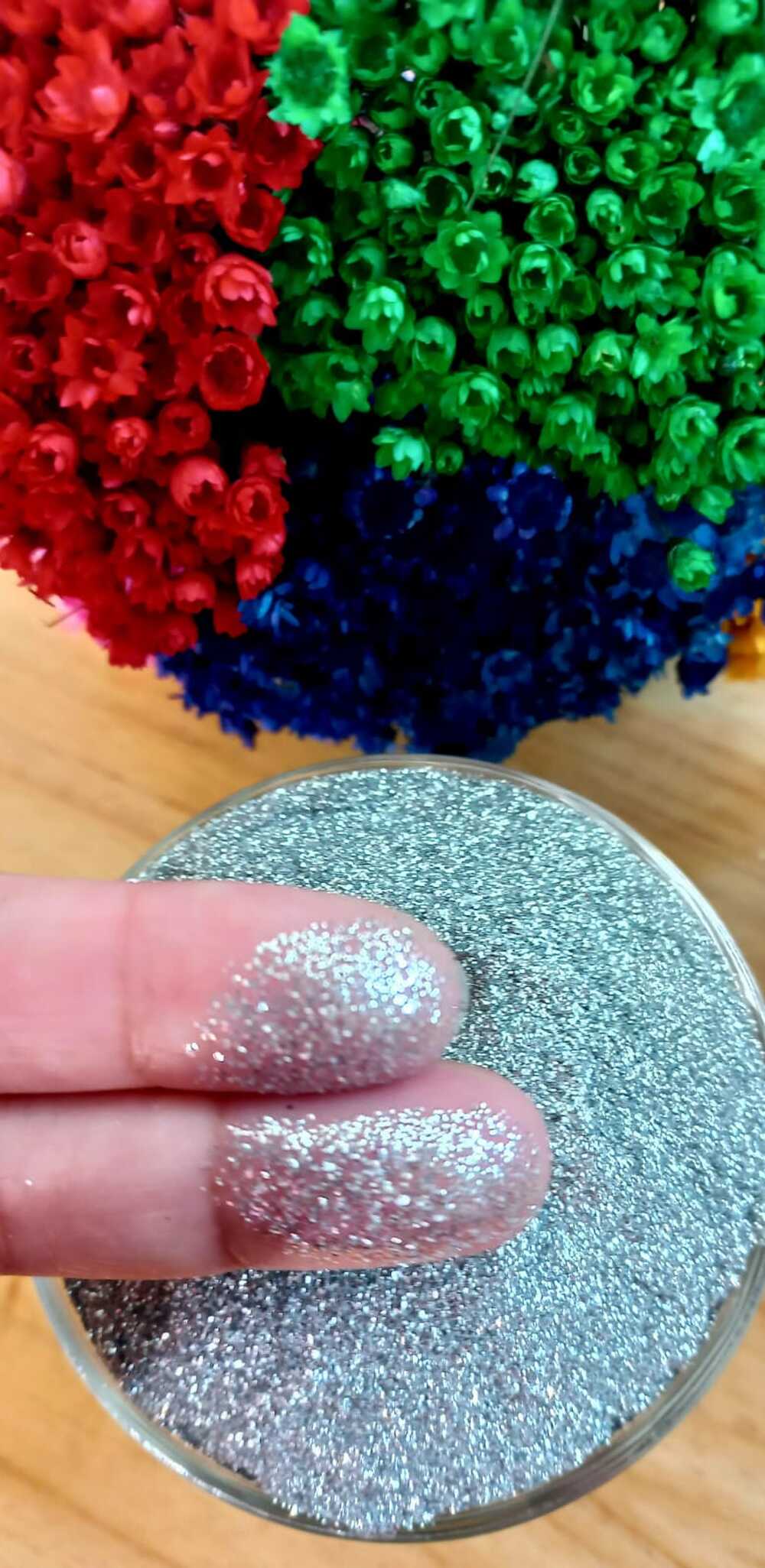 Glitter Fino Prata em Gramas - Resina Epóxi | Decoração para Unhas I Artesanato - 10 g. Cores fortes e vibrantes, com efeitos incríveis.